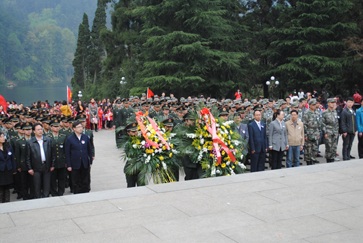 贵大新闻网讯(贵州大学通联站 周莉)清明时节雨纷纷,革命传统励后人。4月3日上午,庄严雄伟的解放贵州革命烈士纪念碑前,肃立着一支整齐的队伍,飒飒风声寄托着他们的无尽哀思,铮铮誓言表达着他们的铁骨忠诚。来自贵州大学的师生代表在贵阳市黔灵山“解放贵州革命烈士纪念碑”前隆重举行祭扫革命先烈活动。本次活动由校学生工作部(处)和成都军区驻贵州大学选培办共同组织,校党委副书记冯晓宪、各学院分管学生工作副书记、学生会主席、团委副书记以及全体国防生近300名师生代表参加了此次活动。仪式由成都军区驻贵州大学选培办主任毛佳康主持。