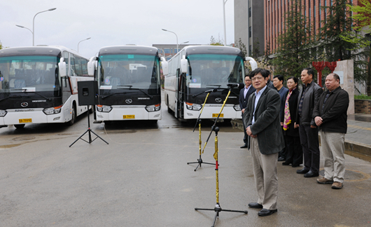 郑强校长在讲话中表示,贵大交通车不仅仅是一种交通工具,也是一种文化符号,是贵大真正走到百姓心目中的一种表现。交通车的试运行,将为师生提供便利,解决师生跨校区上班、上课、教学和科研交通不便的问题。