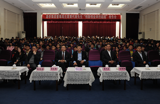 黄代放董事长生动风趣、内涵丰富的报告使参会人员知晓了泰豪做“中国的泰豪,世界的泰豪”的奋斗目标,认同了泰豪人承担责任、创新超越的价值理念,感受了他执着追求、创造梦想的活力。同学们纷纷表示,黄代放董事长的报告对个人今后的职业选择、专业定位、创新创业、成长成才具有积极的作用,自己今后将明确奋斗目标,珍惜大学期间学习和实践的机会,努力学习专业知识和技能,更好地在服务社会的实践中实现自己的人生价值。