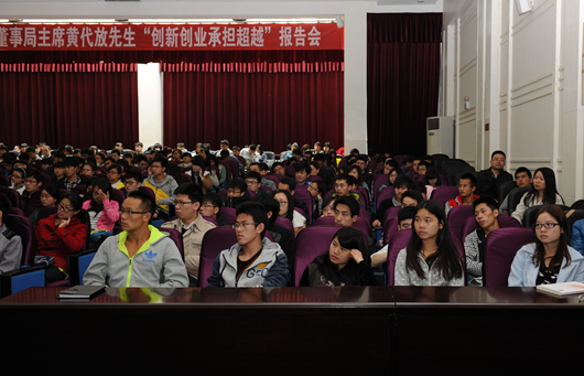 贵大新闻网讯(实习记者 慎志懿)4月29日下午,泰豪集团董事局主席黄代放先生“创新创业 承担超越——个人发展的职业选择”报告会在我校北校区学术报告厅举行。校党委书记姚小泉、副校长吴次南,泰豪集团和我校相关部门负责人,各学院师生代表聆听了报告。