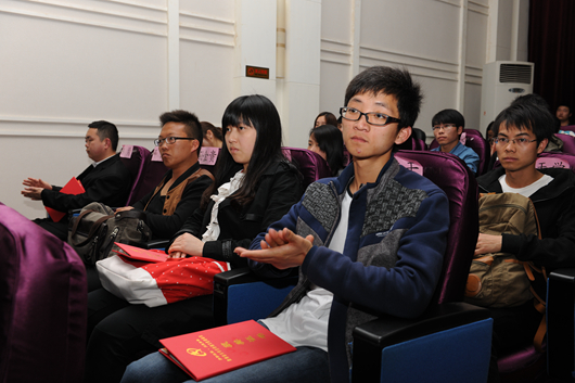同时,我校杨永强同学荣获全省“十佳大学生”荣誉称号,我校选送的节目《橘颂》参加在全省中华优秀传统经典朗诵会,8位同学的表演获得现场观众的一致好评。