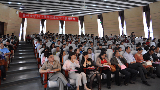 贵大新闻网讯(招生就业处)5月22日下午,我校2014届毕业生就业工作推进会在西校区圆形报告厅举行。校党委副书记冯晓宪出席并做专题讲座,各学院(研究中心、实验室)党委副书记、负责毕业生就业工作的老师、招生就业处全体成员和近300名学生代表参加。推进会由招生就业处处长惠淑林主持。