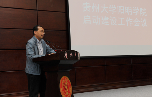 贵大新闻网讯(记者团 章映红)5月22号下午,为增强自主创新能力、激发学生的创新精神,培养高水平创新型人才,推动有特色高水平领军型大学建设,我校在北校区行政楼报告厅召开启动阳明学院建设工作会议。校长郑强,校党委副书记任钢建、冯晓宪、副校长金道超、赵德刚,省教育厅社政处处长鲁源安出席会议。学校职能部门和学院相关负责同志参加会议。