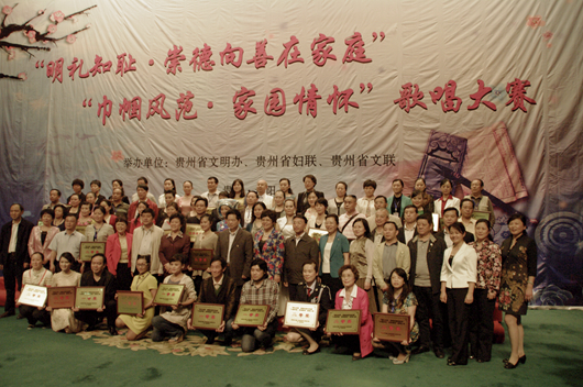 贵大新闻网讯(校工会 王更生 李碧勇)5月26日上午,由省文明办、省妇联和省文联3部门共同举办的“明礼知耻•崇德向善在家庭”——“巾帼风范•家园情杯”歌唱大赛在省委大礼堂举行。来自全省9个市(州)和省直各单位的41支队伍参加比赛。