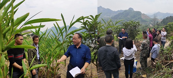 贵大新闻网讯(药学院 戴隆满 摄影报道)4月30日,化学与化工学院党委书记王华、院长林倩、党委副书记杨静,电工学院党委书记李庆华、党委副书记刘明锋,药学院党委书记凃华君,烟草学院植保专家桑维钧教授一行11人赴贞丰县连环乡对砂仁产业发展进行指导。