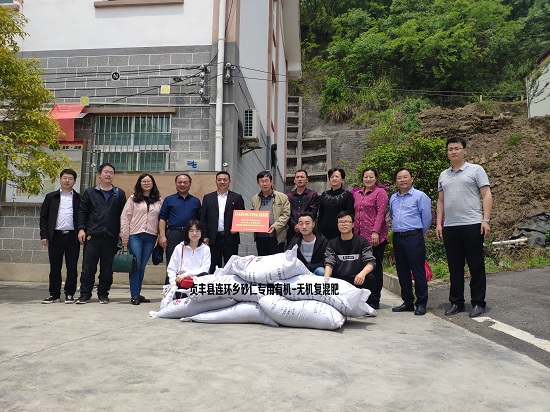 专家一行抵达连环乡,与乡党委书记黄刚、乡长徐方、乡党委委员周廷福简单交流后,前往砂仁产业基地调研指导。进入基地,在对基地今年砂仁种植规模、病虫害防治、管理等情况进行了解,并对砂仁褐斑病、砂仁枝枯病、砂仁炭疽病等病害进行查看后,桑维钧为当地农业服务中心技术人员、专业合作社负责人、种植大户就如何预防砂仁病害、施肥、打药、管护等问题进行现场指导和示范。随后,王华和林倩代表三个学院赠送了由贵州省化工研究院研制、贵州省五谷惠生态农业科技有限公司为连环乡砂仁产业特制的有机-无机复混肥料。