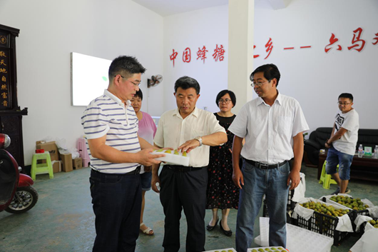 贵大新闻网讯 7月7日,校党委副书记、贵州大学精品水果产业发展工作专班分管校领导骆长江率贵州大学服务精品水果产业技术团队,先后到安顺市镇宁县六马蜂糖李种植基地、金林源果木种植农民专业合作社、镇宁自治县农旅综合开发投资有限公司、贵州六马蜂糖李种植农民专业合作社,调研贵州大学精品水果团队服务镇宁蜂糖李项目情况。