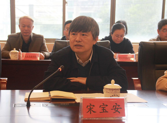 宋宝安讲话。他指出,近年来,贵州大学围绕省委、省政府重点发展的12个特色产业,组建服务农村产业革命的12支科研团队,助力农村产业革命向纵深发展,在农业农村厅领导的信任和支持下,贵州大学发挥人才优势、科技优势深入到脱贫攻坚一线,为脱贫攻坚和乡村振兴提供智力支持。未来,双方将再接再厉、精诚合作,全面总结合作经验、合作成果,协同研究创新、协同服务社会,共同为乡村振兴和农业农村发展,为今年决战脱贫攻坚、决胜全面小康收官作出应有贡献。