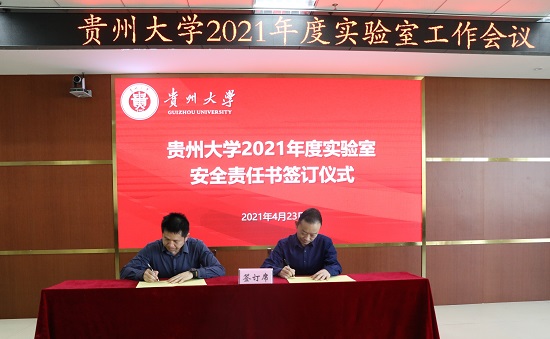 陈祥盛代表学校与二级单位签订《2021年度实验室安全责任书》,并分别向材料与冶金学院、农学院、农业生物工程研究院下达2021年度实验室系列绩效目标任务书。
