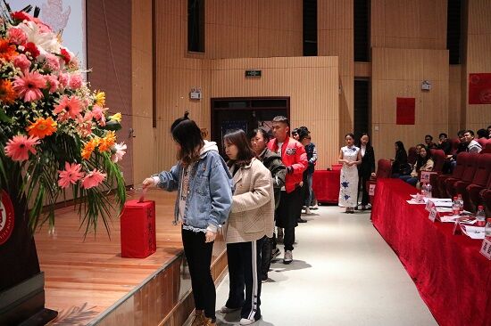 大会选举阶段,主持人首先宣读选举办法、候选人名单并对候选人进行简单介绍。各候选人分别进行了竞职演讲。候选人韩依婷声情并茂地讲述了自己过去一年在学生工作中的成长经历和收获,并表示如果当选,一定会全力配合好老师工作和全心全意为同学服务。三位候选人演讲完毕,各团员、学生代表在礼仪的带领下依次投票。大会在计票期间还安排了歌唱表演。最后曹贞贞老师宣布选举结果。