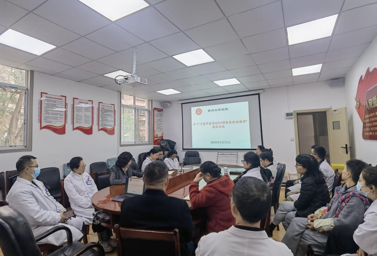 今年是习近平总书记“3·18”重要讲话发表五周年,3月15日上午,贵州大学医院组织职工重温“习近平总书记‘3·18’重要讲话精神”,并就医院建设发展问题开展座谈交流。