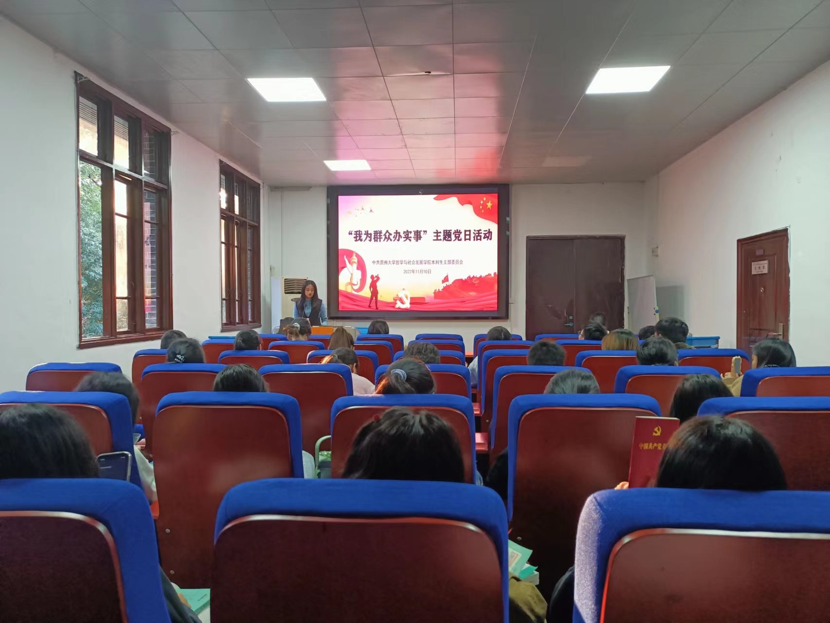根据《关于2022年基层党组织生活安排意见的补充通知》安排,结合支部实际,2022年11月10日下午,哲学学院本科生党支部在人文楼308会议室开展了“我为群众办实事”主题党日活动。本次活动由吴庆花同志主持,本科生党支部全体党员、部分入党积极分子参加本次活动。