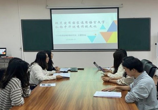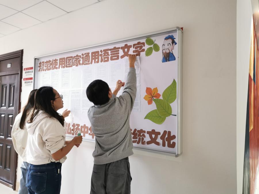 研三同学共同学习了国家和省内发布的有关语言文字的重要文件,也通过一些用字不规范的反面例子提醒大家在学习和生活中都要注意规范使用文字。