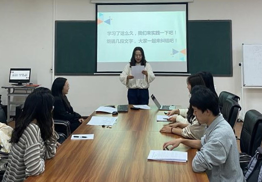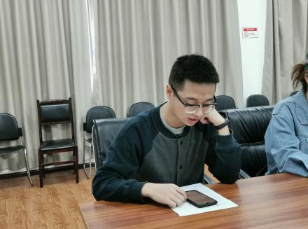 研二同学以普通话发音比赛的形式,进行了现场诗歌朗诵和难解字、常用字发音的比拼,现场同学们踊跃参与。