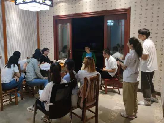 团队共深入两百余户村民家中,完成调查问卷共218份,深入访谈8人。白天,团队成员分小组进行问卷调查和深度访谈;晚上,指导老师张自强组织17名队员开会,听取团队各组成员在走访调研过程中遇到的问题、发现的情况,进而分析归纳,凝练为经验结论,并嘱咐团队成员第二天走访调研时需要注意的问题,以便更好地开展接下来的调研和访谈活动。