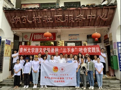 纳孔村位于贵州省贞丰县者相镇,村区位独特,交通便利,临近省级著名风景名胜区三岔河、双乳峰,是一个布依风情浓厚且历史悠久的村寨,被誉为“巾帼布依风情第一寨”,入选“第二批全国乡村旅游重点村”。贵州大学旅文学院近年来切实开展对口党建帮扶工作,聚焦者相镇旅游资源富集、人文文化悠久的特点,积极助力该镇乡村旅游,多次组织专家教授到者相镇开展专题讲座辅导。特别是今年,学院选派了新引进高层次人才熊琛然博士到董箐村担任驻村第一书记,进行智力帮扶。同时,积极争取相关政策支持,推荐贞丰县者相镇相关同志参加“2020年文化和旅游部创客行动地方实施项目—滇桂黔文化和旅游脱贫攻坚创客培育项目”研修班,助力者相镇纳孔村和董箐村先后入选“贵州省乡村旅游重点村名录乡村”“全国旅游重点村”,者相镇入选“全省乡村旅游重点镇”。自2019年开始,旅文学院研究生每年都到纳孔开展暑期社会实践。今年是在第3个年头,研究生暑期“三下乡”社会实践队一行18人再次来到贞丰县者相镇纳孔村,开展为期一周的“乡村旅游助推乡村振兴”实地走访调研活动,发挥专业特长,在服务基层的社会实践课堂中发现问题、解决问题。