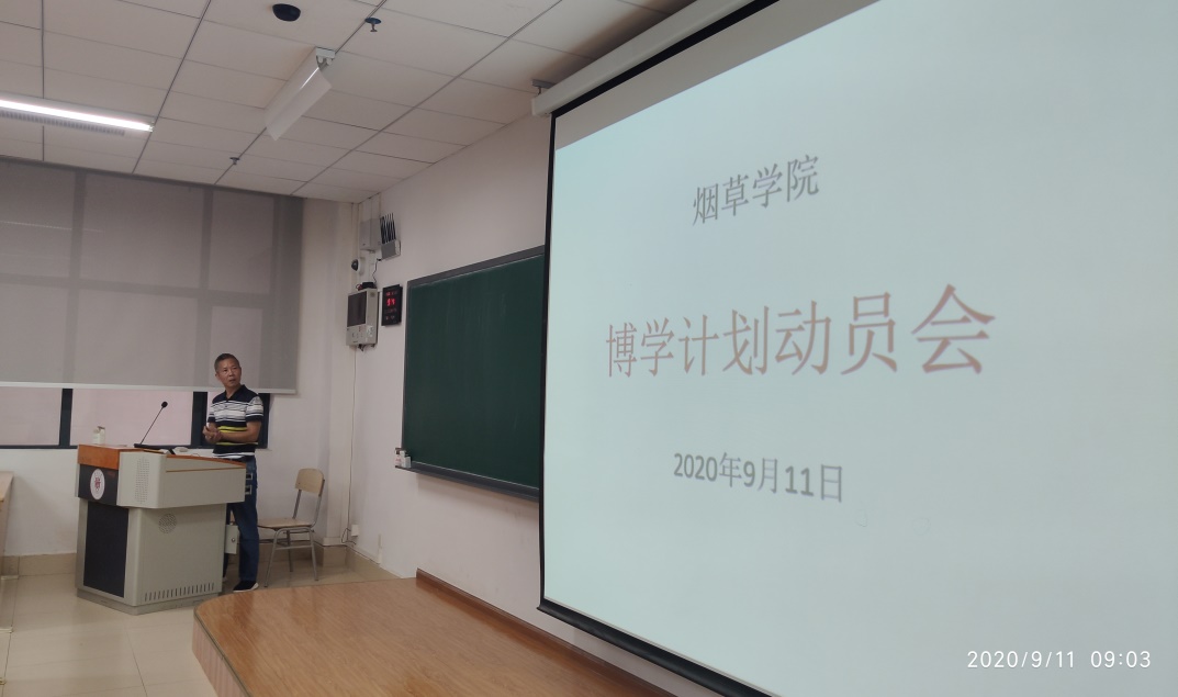 2020年9月11日上午9点,贵州大学烟草学院在明俊楼307教室召开2017级本科生博学计划推进会,副院长刘仁祥教授出席会议。